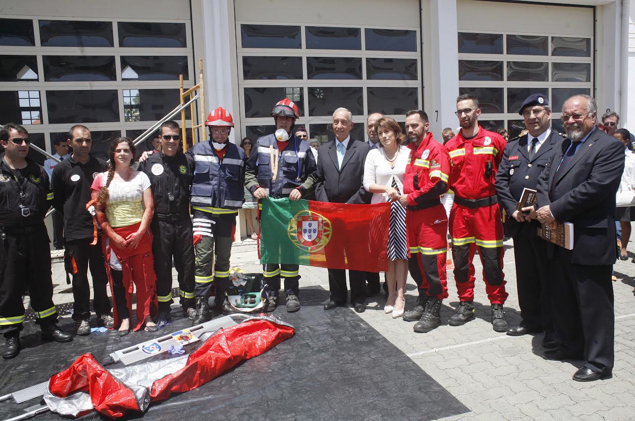 Interessante e seguida com curiosidade e muita atenção pelo Presidente da República foi a demonstração da Equipa de Trauma, que alcançou o segundo lugar recentemente no campeonato, em Elvas, qualificando-se para o Mundial, a ter lugar em outubro no Brasil.